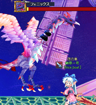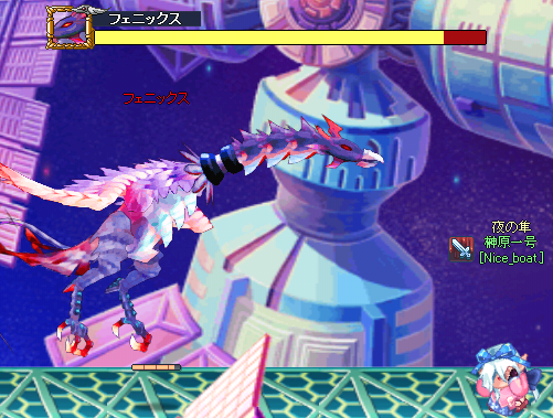 主なダメージ源は、ただフェニックス本体を叩くよりも左側のタンクを叩くと、HP4分の3くらいでタンクが蒸気を噴き出す、それでダメージを与えられるらしい。
