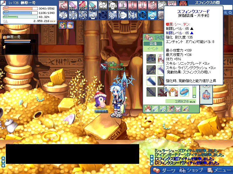 ただダッシュ攻撃でマウスピーチを一撃で葬れなくなってた。玄武装備だしにいくの面倒かも。